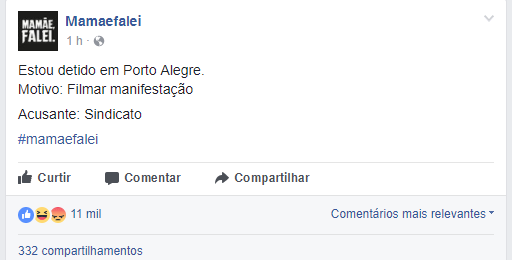 Em post na fanpage do canal no Facebook, Arthur disse que o motivo da detenção foi “filmar a manifestação” após acusação de sindicalistas da capital gaúcha.