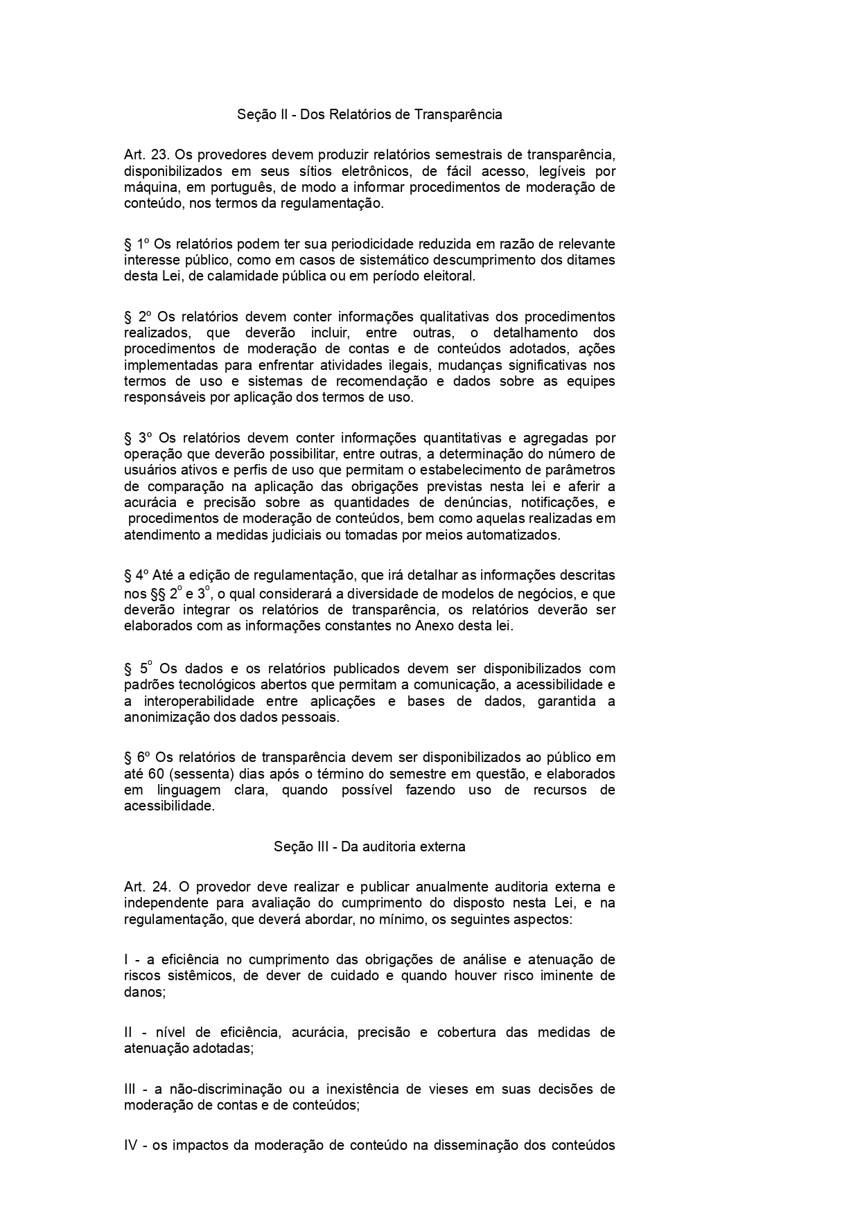 O relator do PL da Censura (PL 2630/2020), deputado Orlando Silva (PCdoB/SP), protocolou o parecer de plenário. Nas últimas semanas, versões do parecer circularam entre deputados, mas nenhuma versão oficial havia sido protocolada. No novo parecer o relator tirou um dos pontos mais polêmicos, a criação de uma “Entidade de Supervisão”. Entretanto, especialistas entendem que esse movimento é uma estratégia para transferir para o Poder Executivo todas as prerrogativas para criar esse órgão da forma como ele quiser.